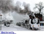 Заснеженный локомотив на польской станции Гродзиск-Велькопольский (Grodzisk Wielkopolski).
